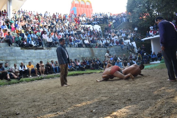 शिमला के तारादेवी परिसर में दुर्गाष्टमी अवसर पर आयोजित कुश्ती प्रतियोगिता