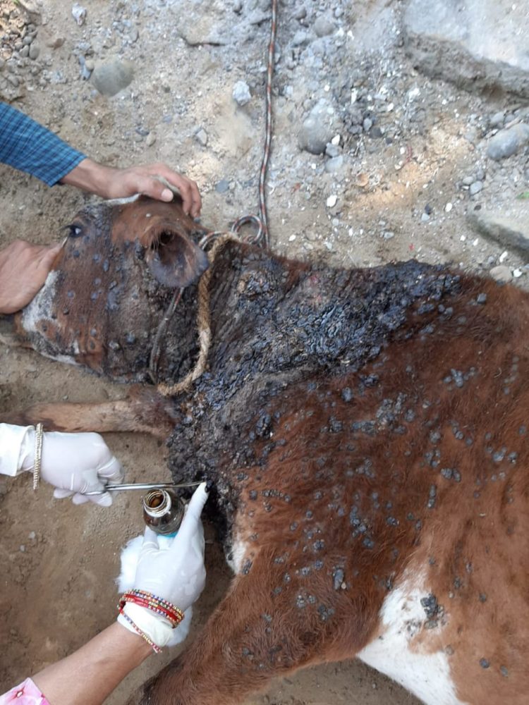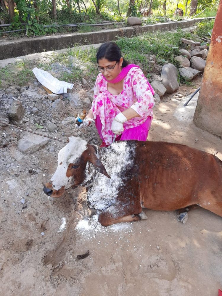 तो उन्होंने अविलम्भ अपने अधिनस्त कर्मचारियों को तुरंत बछड़ी का इलाज करने के निर्देश दिए, जिसपर कार्यवाई करते हुए वेटरनरी फार्मासिस्ट मीरा तोमर व जोगिन्दर सिंह ने पशु चिकित्सा अधिकारी काला अम्ब डॉ प्रवेश ठाकुर के मार्गदर्शन में ग्रस्त बछड़ी का इलाज कर उसे राहत प्रदान की।