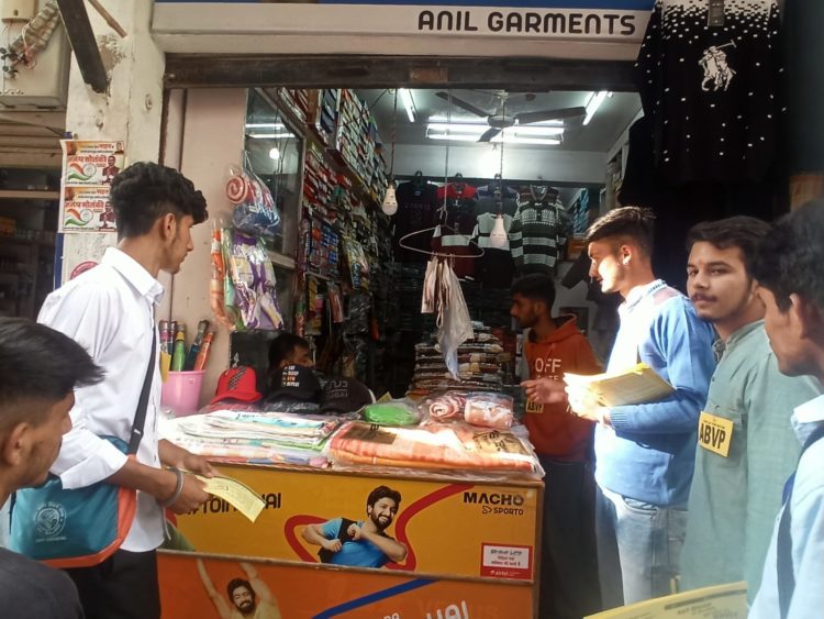 कि विद्यार्थी परिषद प्रत्यक्ष रूप से भाग लेने के बजाए लोकजागरण अभियान के तहत जगह-जगह घूमकर लोगों को अनिवार्य मतदान करने और नोटा में वोट बर्बाद न करने के लिए प्रेरित करेंगे ताकि वे राष्ट्रहित में योग्य व्यक्ति योग्य नेता का चयन कर सकें जो राष्ट्र को ऊंचाई पर ले जाकर देश का नाम रौशन करने में सहभागिता निभा सके।
