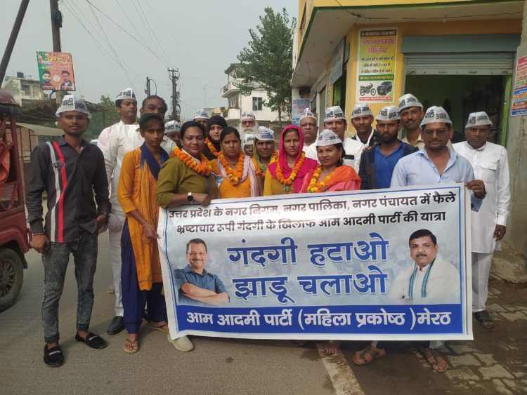 मेरठ में महिला प्रकोष्ठ आप ने निकाली “गंदगी हटाओ,झाड़ू चलाओ पदयात्रा