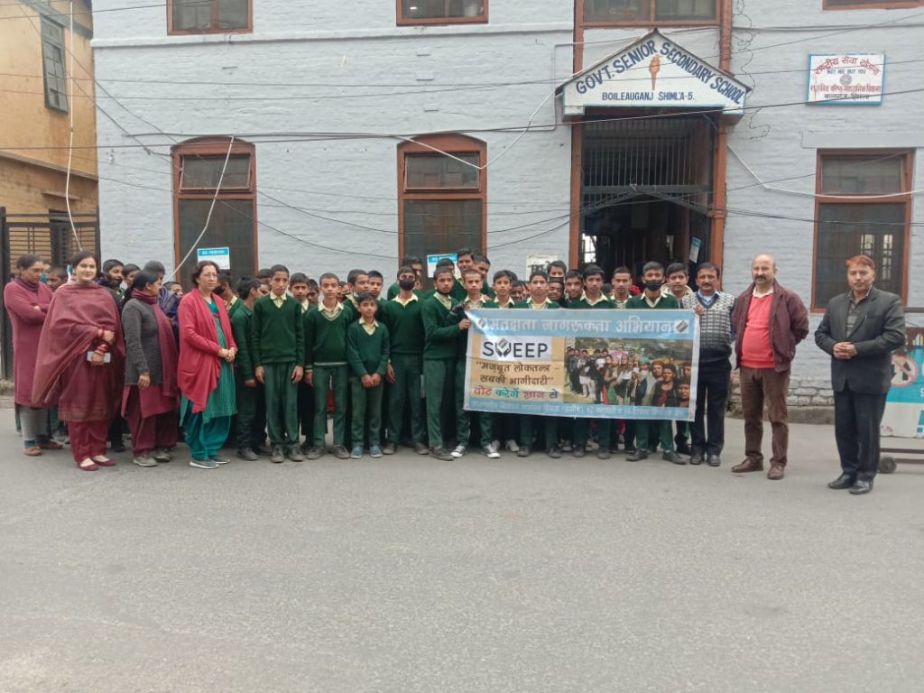 हिमाचल प्रदेश: 64 शिमला ग्रामीण विधानसभा क्षेत्र में मतदाता जागरूकता एवं मतदाता सहभागिता अभियान के तहत राजकीय वरिष्ठ माध्यमिक पाठशाला बालूगंज, बीएसएन हाई स्कूल चक्कर तथा राजकीय वरिष्ठ माध्यमिक पाठशाला घणाटी में विभिन्न कार्यक्रम आयोजित किए गए.