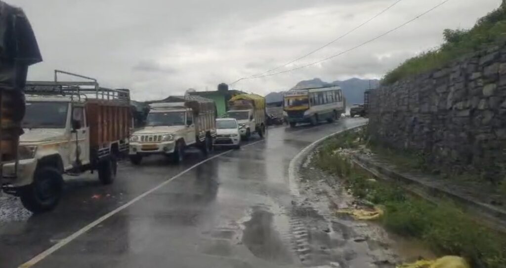सड़क के दोनों छोर पर सैकडों वाहन लंबी कतार में खड़े हैं, बड़ी संख्या में सेब से लदी गाड़ियों में भरा सेब मंडी पहुँचने से पहले ही खराब हो जाएगा, गाड़ियों और बसों में तीन दिन से कैद सैकड़ो यात्री सड़क खुलने की राह देख रहे है।