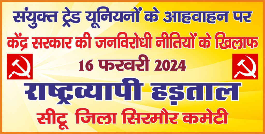 मोदी की गारंटी, अच्छे दिन का वायदा करने वाली गरीब हितेषी होने का दम भरने वाली मोदी सरकार गरीबों को खत्म करने पर आमदा है। मोदी सरकार की इस तानाशाही व मजदूर विरोधी नीतियों के खिलाफ शिलाई में ट्रेड यूनियनें 16 फरवरी को पूर्ण हड़ताल करेंगी। इस दौरान उद्योग पूरी तरह बन्द रहेंगे। ट्रेड यूनियनों के संयुक्त मंच का कहना है कि मजदूरों के 26 हज़ार रुपये न्यूनतम वेतन की मांग ज्यों की त्यों खड़ी है। आम भारतीय की आय पचास प्रतिशत से अधिक बढ़ने का दावा करने वाली मोदी सरकार को आईएलओ ने बेनकाब कर दिया है। अंतर्राष्ट्रीय श्रम संगठन आईएलओ ने हालिया जारी आंकड़ों में स्पष्ट किया है कि भारत के करोड़ों मजदूरों का वास्तविक वेतन महंगाई व अन्य खर्चों के मध्यनज़र घटा है। यह सरकार जनता को मूर्ख बनाने का कार्य कर रही है। मजदूरों व कर्मचारियों के लिए खजाना खाली होने का रोना रोने वाली केन्द्र सरकार ने पूंजीपतियों से लाखों करोड़ रुपये के बकाया टैक्स को वसूलने पर एक शब्द तक नहीं बोला है। इसके विपरीत पूंजीपतियों को फायदा पहुंचाने के लिए कॉरपोरेट टैक्स को घटा दिया गया है। टैक्स चोरी करने वाले पूंजीपतियों को सरकार ने पिछले पांच वर्षों में लगातार संरक्षण दिया है।