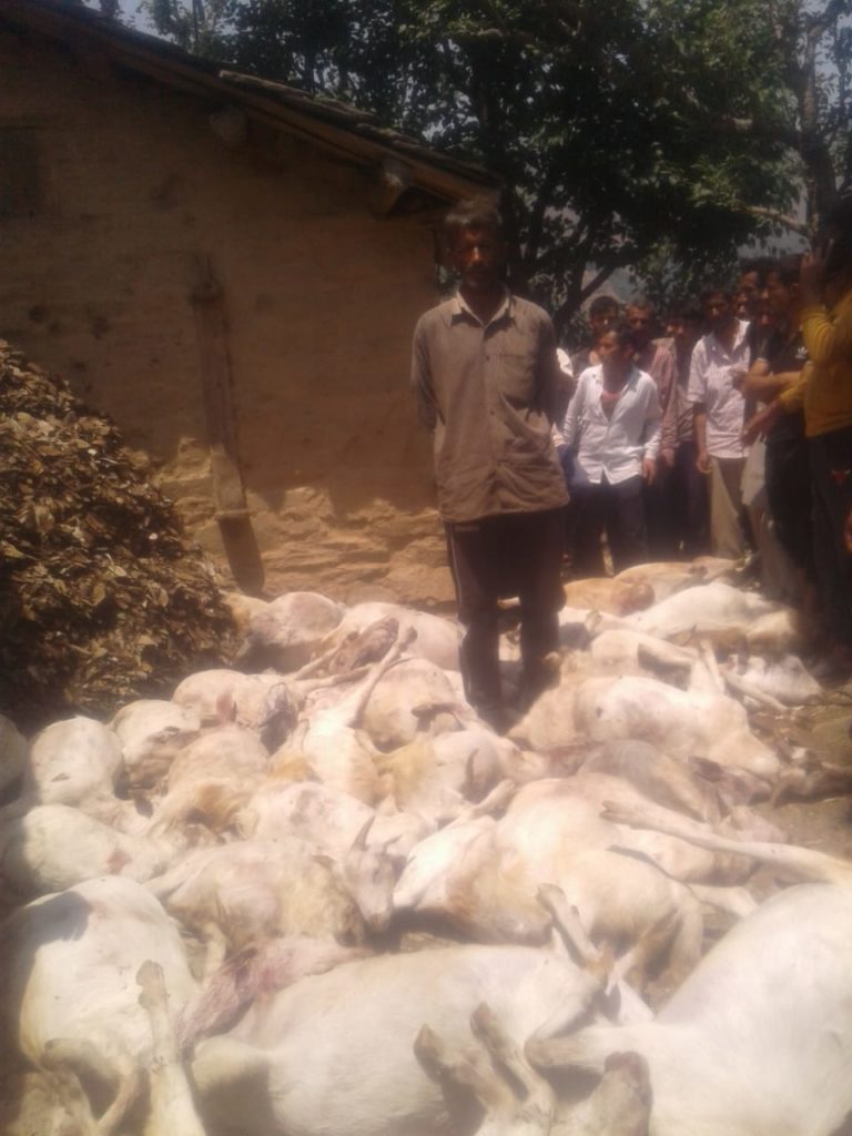 ओबरे में 22 बकरे तथा 20 बकरियां मृत पड़े थे ओबरे का दरवाजा टूटा हुआ था