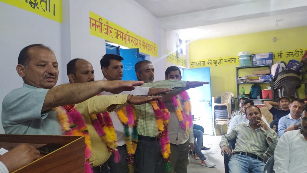 पूर्व जिला अध्यक्ष रंगीलाल ,जिला से पहुंचे पर्यवेक्षक अत्तर सिंह तोमर,कल्याण नेगी,मायाराम शर्मा,गीताराम शर्मा, रघुबीर सिंह ठाकुर व डी आर पराशर की देखरेख में सर्व सहमति से संम्पन्न हुआ जिसमें अध्यक्ष रणसिंह चौहान, उपाध्यक्ष दुलाराम शर्मा,महासचिव अनिल तोमर,कोषाध्यक्ष राजेश शर्मा,लेखाकार पूर्ण चौहान चुने गए बैठक में सुरजन ठाकुर,मांगीराम ठाकुर,बलबीर चौहान,बी आर सी सी चत्तर ठाकुर सहित खण्ड के समस्त अध्यापक मौजूद रहे