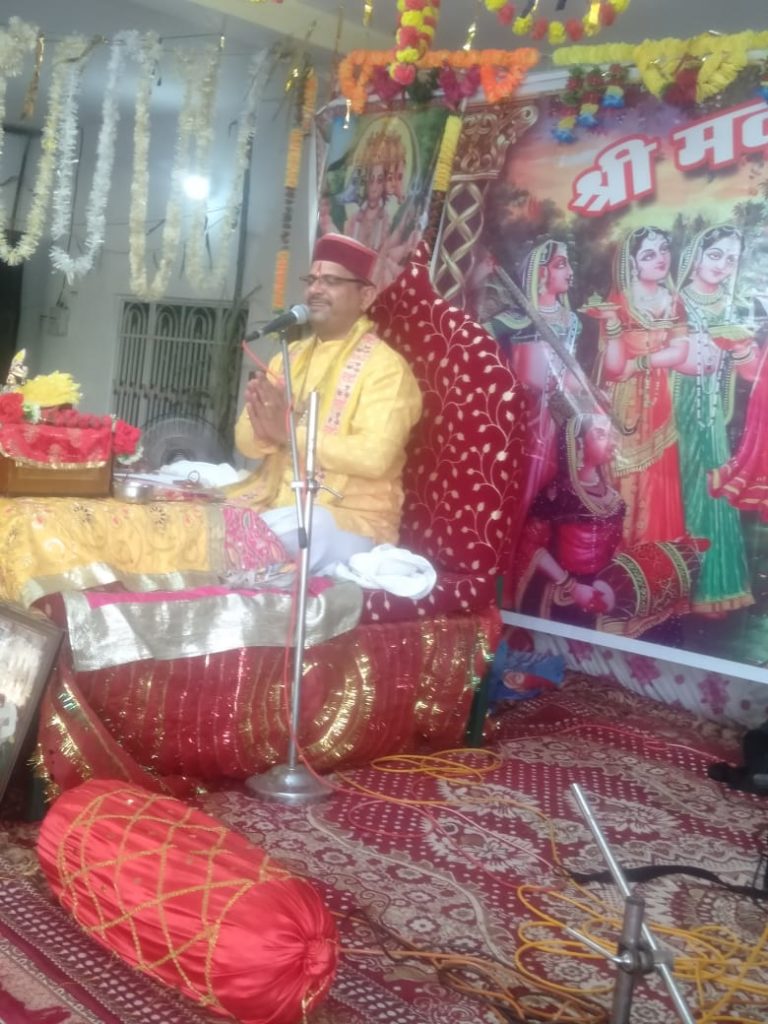 श्री मद्भागवत महापुराण कथा के चौथे दिवस नरसिंह भगवान जी ने दैत्य हिरन्यकश्यप का संहार किया।