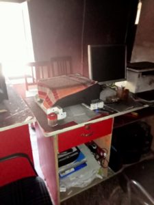 रिपोर्ट के मुताबिक तीन कंप्यूटर, तीन प्रिंटर, एक हिटिंग मशीन, एक लैपटॉप, टेबल फैन, सीसी टीवी कैमरे, आधार फिंगर प्रिंट मशीन, बेब कैमरा, आधार आईरिज मशीन, वायरिंग, टेबल, कुर्सियों सहित लगभग 3 लाख से अधिक रुपए का नुकसान आंका गया है। जिसकी रिपोर्ट बनाकर विभागीय अधिकारियों को भेजी गई है।
