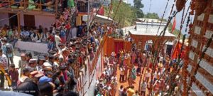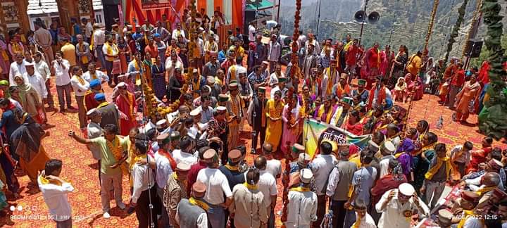 पूर्व मंत्री ठाकुर कौल सिंह अपने दलबल के साथ देव गणपति मंदिर की प्रतिष्ठा में शामिल हुए।
