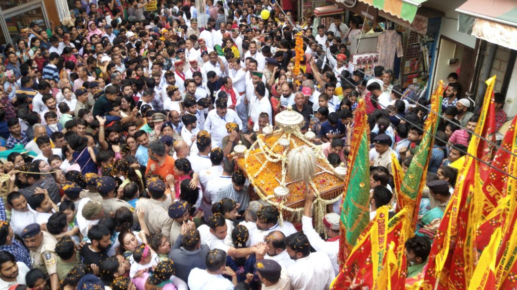 मंदिर के आसपास फूल मालाएं से सजाई गई हैं। मंदिर की दिव्यता और भव्यता देखते ही बनती है। मंदिर से निकलने के बाद पुरानी कचहरी के समीप माता का स्वागत किया गया। इस दौरान स्वास्थ्य मंत्री डॉ. राजीव सैजल पालकी का स्वागत किया। इस मौके पर उनके साथ हिमाचल प्रदेश खादी बोर्ड के उपाध्यक्ष पुरूषोतम गुलेरिया समेत जिला प्रशासन के अधिकारी व कर्मचारी उपस्थित रहे।