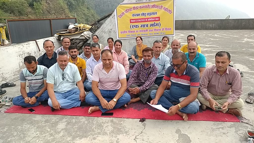 पंचायती राज,ग्रामीण विकास विभाग में विलय संबंधी मांग को लेकर हिमाचल प्रदेश जिला परिषद कर्मचारी अधिकारी महासंघ के आह्वान पर अनिश्चतकालीन कलम छोड़ हड़ताल पर चले गए है ,जिसमे अधिशाषी अभियंता ,सहायक अभियंता, पंचायत सचिव,तकनीकी सहायक और जिला परिषद का अन्य स्टॉफ भी शामिल है l