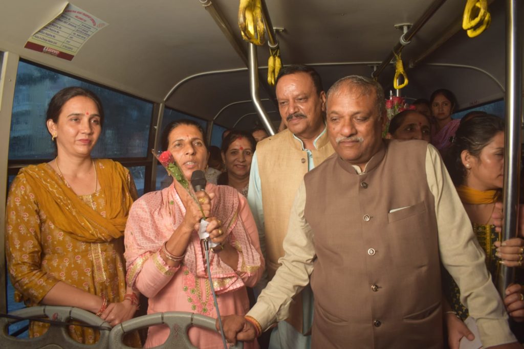 इस अवसर पर विधायक नाहन डॉ राजीव बिंदल ने उपस्थित लोगों को संबोधित करते हुए कहा कि महिलाओं के लिए राज्य के भीतर साधारण बसों में 50 प्रतिशत किराये का निर्णय ऐतिहासिक है। उन्होंने कहा कि वर्तमान भाजपा सरकार में महिलाओं के कल्याण के लिए कई योजनाएं चलाई गई हैं जिससे महिलाओं के जीवन में परिवर्तन हुआ है। उन्होंने बताया कि सरकार के प्रयासों से आज नाहन बस स्टैंड में बहुमंजिला पार्किंग बनाई गई है। उन्होंने बताया कि सरकार द्वारा प्रदेश में 125 युनिट तक की बिजली निशुल्क देने का निर्णय लिया गया है जो कि सराहनीय कदम है जिससे प्रदेश के हर परिवार को इसका सीधा लाभ मिलेगा। उन्होंने बताया कि मुख्यमंत्री जय राम ठाकुर के नेतृत्व में 60 वर्ष से अधिक आयु के लोगों को सामाजिक सुरक्षा पेंशन देने का निर्णय लिया गया है। उन्होंने बताया कि वर्तमान सरकार ने प्रत्येक परिवार को किसी न किसी रूप से सहायता देने के लिए कदम उठाए हैं। उन्होंने बताया कि भाजपा के शासनकाल के दौरान ही पंचायती राज व शहरी निकायों में महिलाओं को 50 प्रतिशत आरक्षण देने का महत्वपूर्ण निर्णय लिया गया।