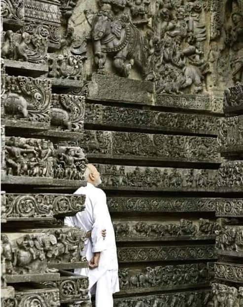 नीचे फ़ोटो में अचरज से होयसलेश्वर मंदिर का शिल्प देख रहे वृद्ध पर्यटक के मन की गुत्थी सुलझाने का एक प्रयास भर किया है।