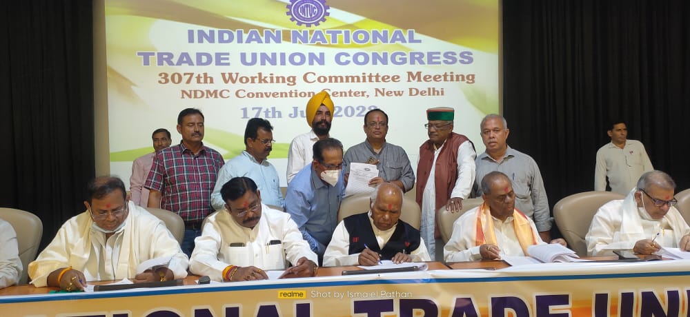 नई दिल्ली के एनडीएसी हाल में आयोजित इंटक यूनियन कांगेस के बैठक की अध्यक्षता राष्ट्रीय अध्यक्ष डॉक्टर संजीव रेड्डी ने की बैठक में हिमाचल प्रदेश से राष्ट्रीय संगठन सचिव कामरेड जगतराम शर्मा विशेष रूप से उपस्थित रहे। बैठक में देश के 50 से अधिक ट्रेड यूनियन नेताओं ने हिस्सा लिया। बैठक के दौरान 40 श्रम कानून तोड़कर चार लेवर कोर्ट बनाने का विरोध जताया गया।