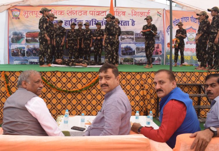 भूतपूर्व सैनिक संगठन पांवटा साहिब व शिलाई क्षेत्र द्वारा आयोजित कार्यक्रम में देश की सीमाओं की रक्षा करते हुए शहीद हुए योद्धाओं को पुष्पांजलि अर्पित की गई तथा कार्यक्रम में उपस्थित उनके परिजनों को सम्मानित किया गया।