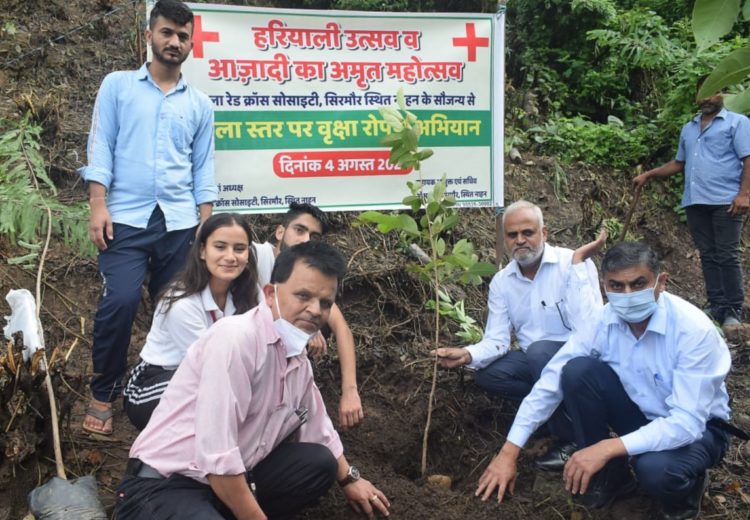 जिला रेड क्रॉस सोसाइटी सिरमौर द्वारा हरियाली उत्सव व आजादी का अमृत महोत्सव के तहत जिला स्तरीय पौधारोपण अभियान चलाया गया जिसकी शुरुआत आज यहाँ सहायक आयुक्त एवं सचीव जिला रेड क्रॉस सोसाइटी सिरमौर घनश्याम दास शर्मा ने पौधा रोपित कर की।