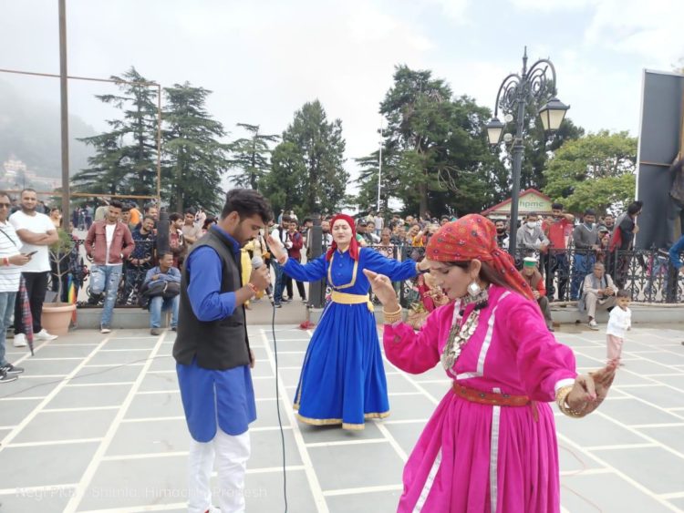 चित्र प्रदर्शनी में केंद्रीय संचार ब्यूरो के शिमला के कलाकारों ने सांस्कृतिक कार्यक्रम के जरिए लोगों को आजादी के अमृत महोत्सव व केंद्र सरकार की विभिन्न जनकल्याणकारी योजनाओं के बारे में भी जानकारी दी गई.