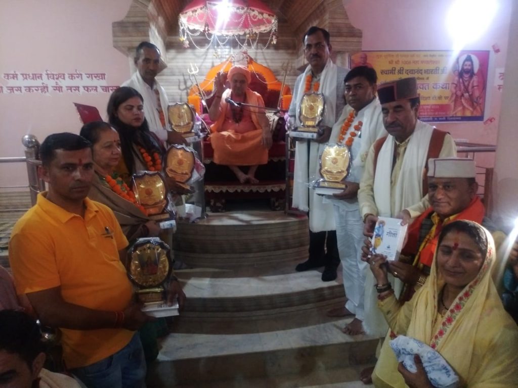 महामंडलेश्वर स्वामी दयानंद भारती ने कहा कि समाज में जो लोग दूसरों की सेवा व मदद को हमेशा तत्पर रहते हैं। उनका सम्मान करना भी हमारा नैतिक कर्तव्य है। उन्होंने गायत्री मंदिर के 38 वर्षों के इतिहास पर प्रकाश डालते हुए सम्मानित हुए श्रेष्ठ व्यक्तियों के कार्यों की सराहना भी की। इस दौरान भजन- किर्तन ,भगवती गीत संगीत व प्रवचनों के पशचात विशाल भण्डारे का आयोजन भी किया गया जिसमें सैकड़ों श्रद्धालुओं ने प्रसाद ग्रहण किया