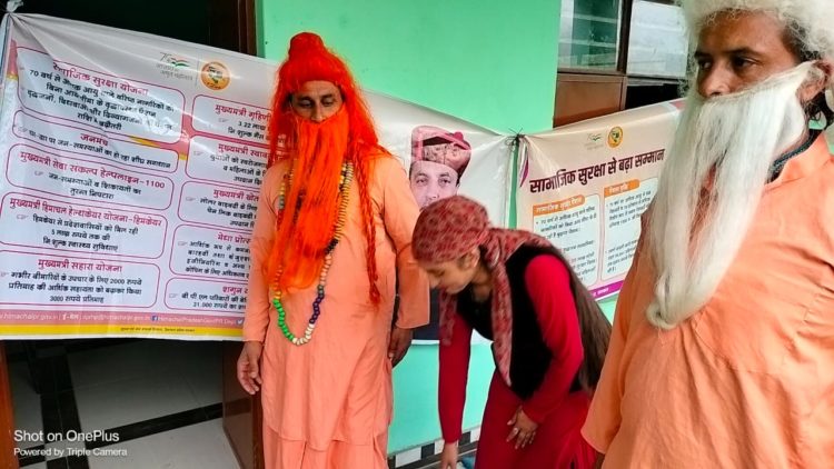 नाहन 17 सितम्बर – जिला सिरमौर में सूचना एवं जन सम्पर्क विभाग द्वारा चलाए जा रहे विशेष प्रचार अभियान के अंतर्गत आयोजित नुक्कड़ नाटक कनकु के शीख में बुजुर्ग चटकू राम, कनकु तथा साधु के किरदार से लोगों को स्थानीय भाषा व आम बोलचाल के तरीके से प्रदेश सरकार की महत्वाकांक्षी योजनाओं की जानकारी प्रदान की।