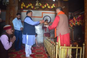 शिलाई दौरे पर ग्रामीण विकास मंत्री वीरेंद्र कंवर ने भंगायणी माता मंदिर में नवाया शीश